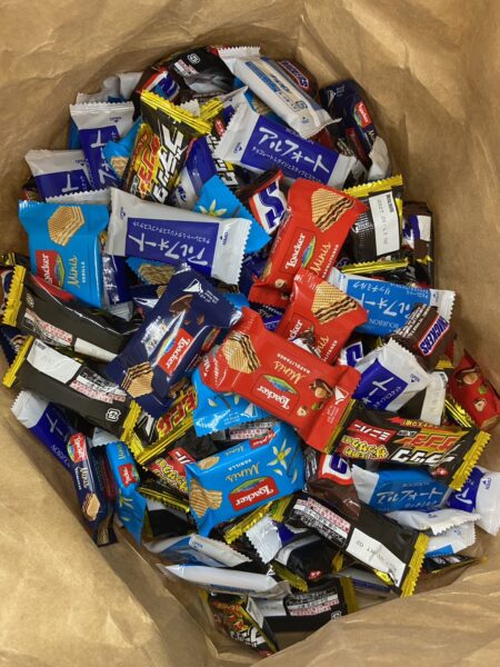 ※お菓子を抱える学びの森事業部SVの髙田さん